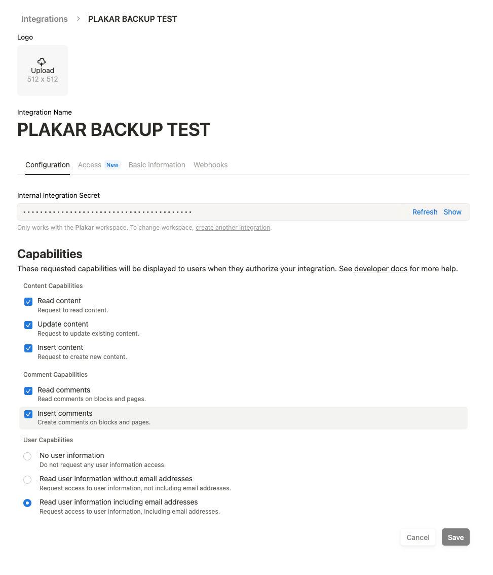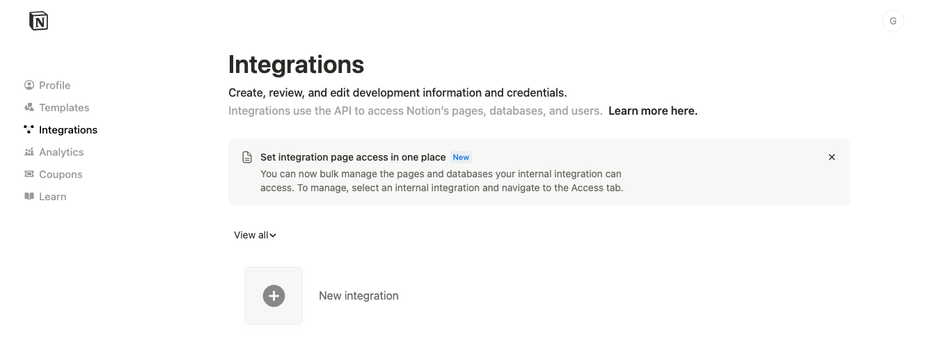 Notion also provides a system of integrations to allow applications to interact with it, so before you perform you first backup you need to create an integration at Notion: