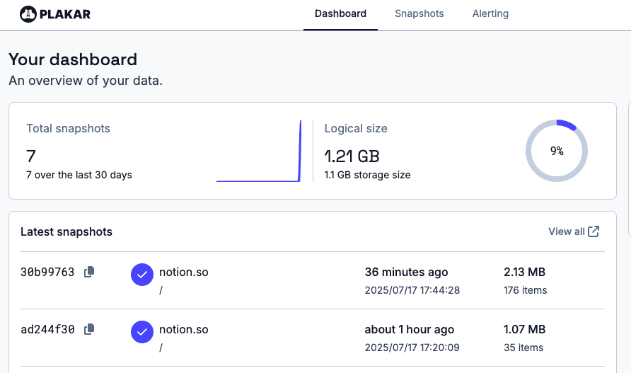 $ plakar pkg add ./notion-v0.1.0-devel.b66af0a_darwin_arm64.ptar
